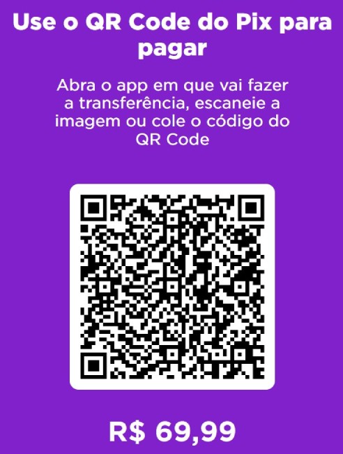 Pague com o QR code acima ou com o código copia e cola abaixo